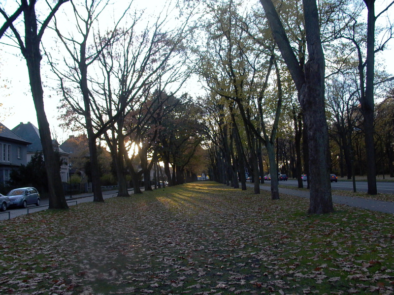 Die Idylle trügt: Hinter der rechten Baumreihe rollt der dichte Verkehr der Ostenallee in Richtung Stadtmitte.